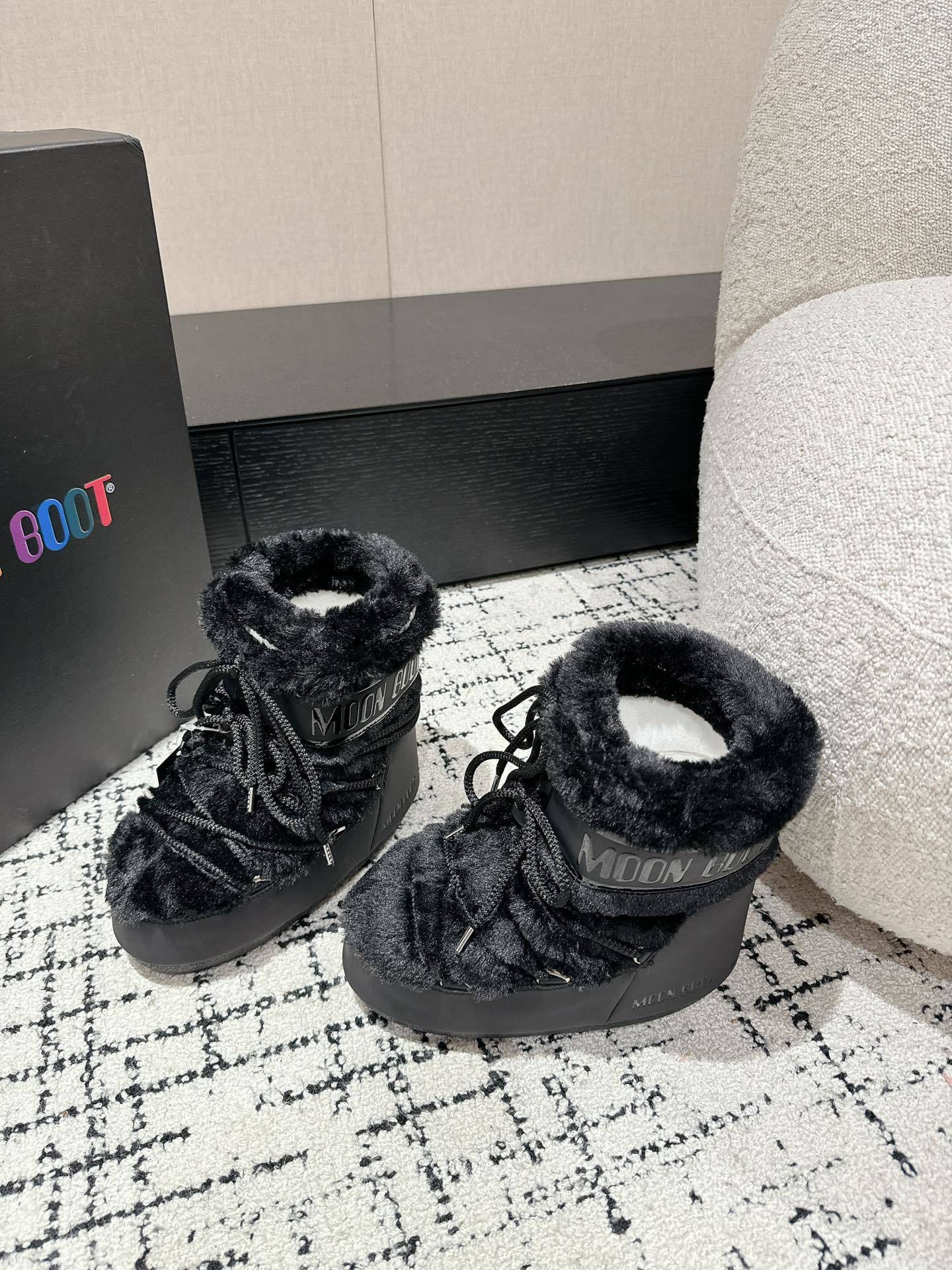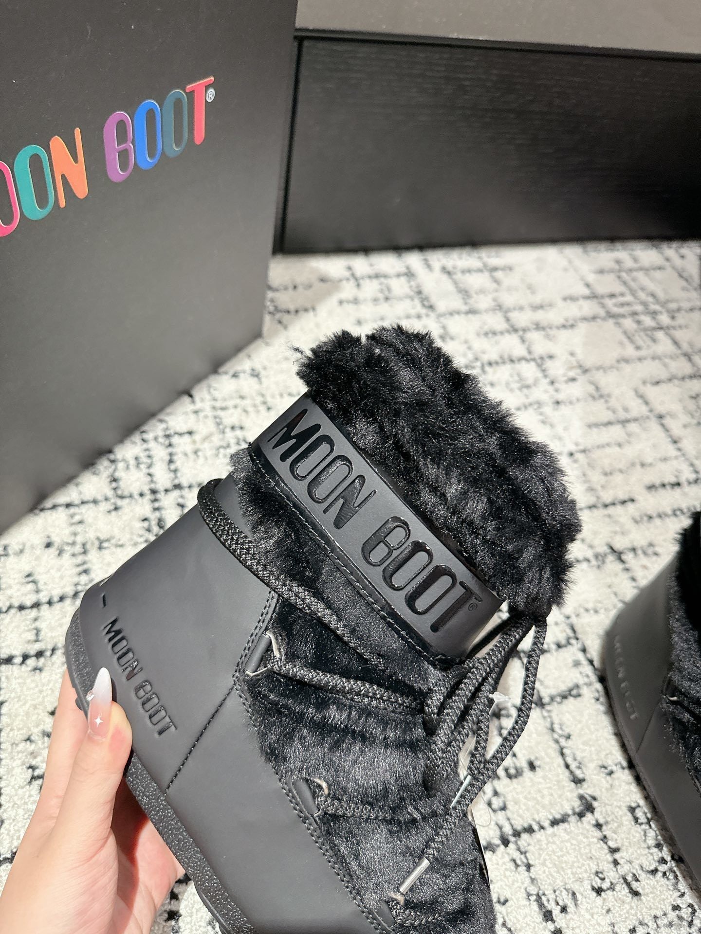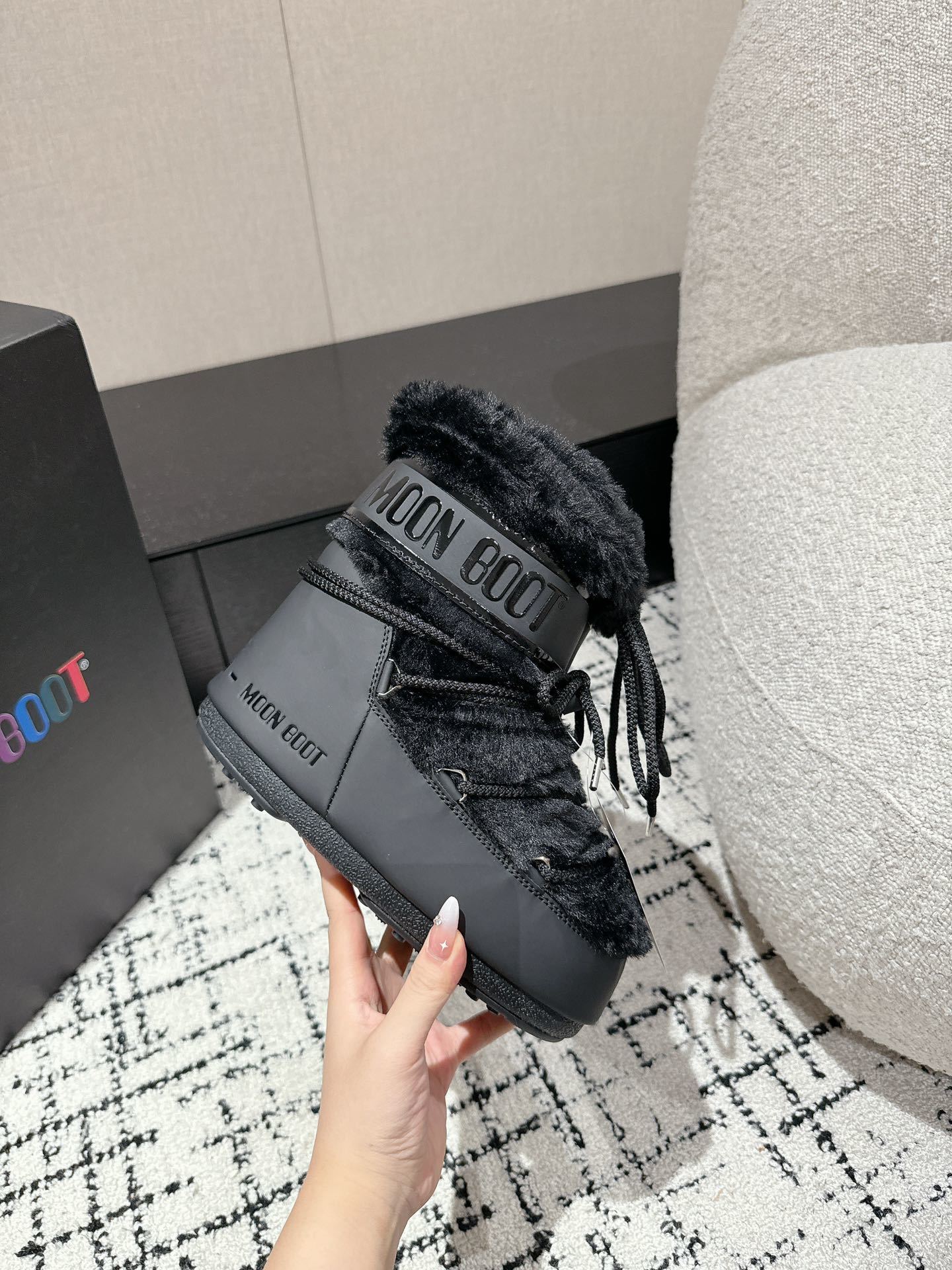 La colorazione black dona un look essenziale e contemporaneo, facilmente abbinabile a qualsiasi outfit, dal casual urbano all’après-ski. La chiusura stringata con lacci tubolari assicura una calzata stabile e regolabile, mentre la struttura imbottita e termoisolante mantiene il piede caldo anche nelle giornate più fredde.